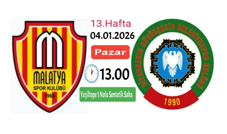 Malatyaspor -Diyarbakır Büyükşehir Belediyespor maçı pazar günü saat 13.00'da Yeşiltepe 1 Nolu sentetik sahada oynanacak.